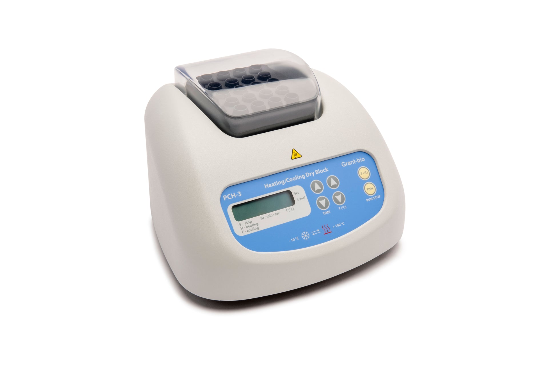 The Grant bio PCH-1/PCH-2/PCH-3 personal benchtop cooler/heaters are ideal for laboratory applications requiring cooling and heating in microtubes within the temperature setting range of – 10°C to +100°C. The PCH cooler/heaters enable a stable temperature to be maintained during room temperature fluctuations.
