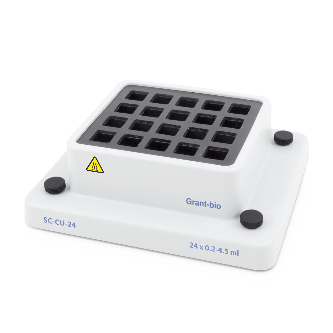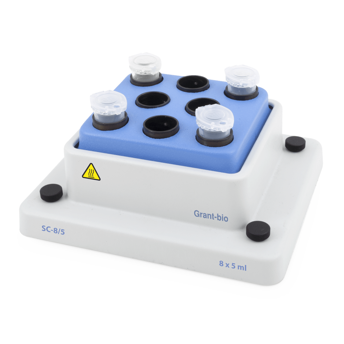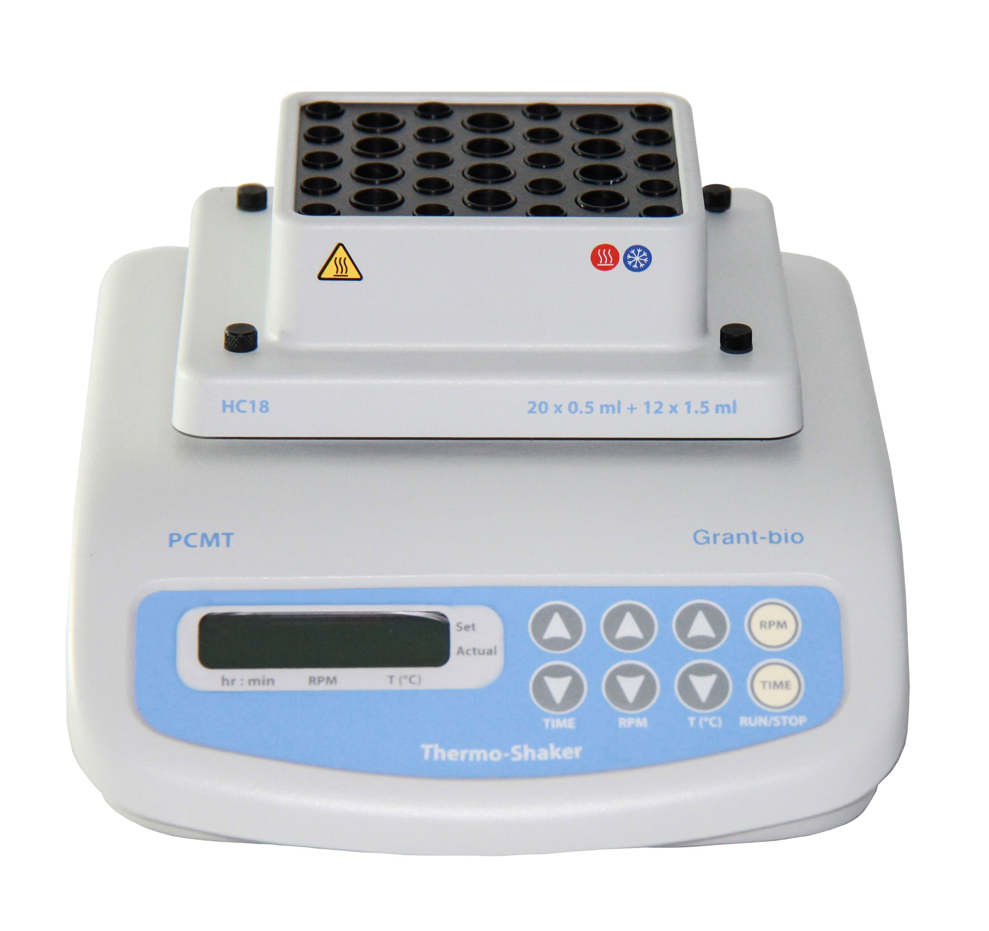 - Choice of interchangeable blocks:HC18 20 (20 x 0.5 ml and 12 x 1.5 ml microtubes)HC32 (20 x 0.2 ml and 12 x 1.5 ml microtubesHC24N (24 x 1.5 ml microtubes)HC24 (24 x 2 ml microtubes)HC96 (96-well microplate for PCR, 0.2 ml) - only compatible with unskirted and semi skirted platesHC8-5 (8 x 5ml conical tubes)HC4-50 (4 x 50ml conical tubes)HC8-15 (8 x 15ml conical tubes)HC32-05 (32 x 0.5ml microtubes)HC20-CUV (20x 10mm cuvettes)HC24-CRYO-L (24 × 3.6 – 4.5 ml cryotubes)HC24-CRYO-S (24 × 1 - 1.8 ml cryotubes)HC20-12 (20 x 12mm diameter round bottom tubes)